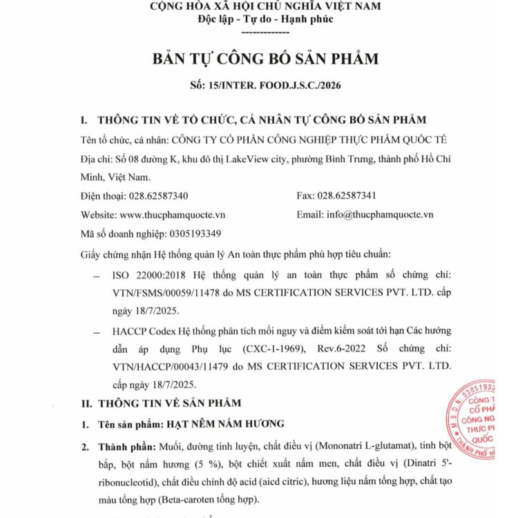 Xem thêmDỊCH VỤ GIA CÔNG GIA VỊ (OEM) NHÂN ĐÔI HƯƠNG VỊ – INTERFOOD Khám phá dịch vụ gia công gia vị (OEM) tại InterFood – hạt nêm, bột ngọt, gia vị nấu nướng, ngũ cốc dinh dưỡng theo công thức riêng. Công nghệ Nhật – Đức, bảo mật tuyệt đối,…